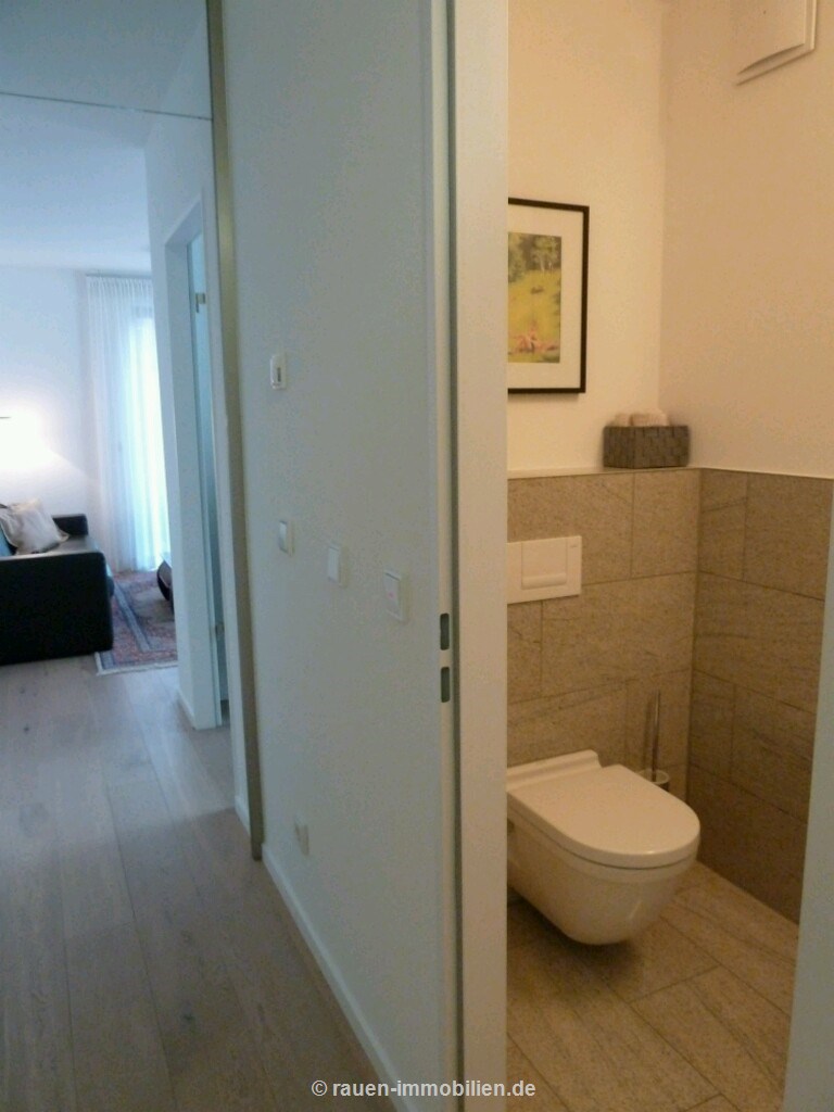 Exklusive 2 Zimmerwohnung, 67 m2, EG, offene Küche, Diele, Granitbadezimmer mit Badewanne und Glasduschzelle, Gäste – WC, Dielenboden mit Fußbodenheizung, Kabelfernsehen, Terrasse mit Garten, Keller und Fahrradkeller, Aufzug, Tiefgaragen – Einstellplatz, schöne Sonnenterrasse und Garteneckgrundstück.
