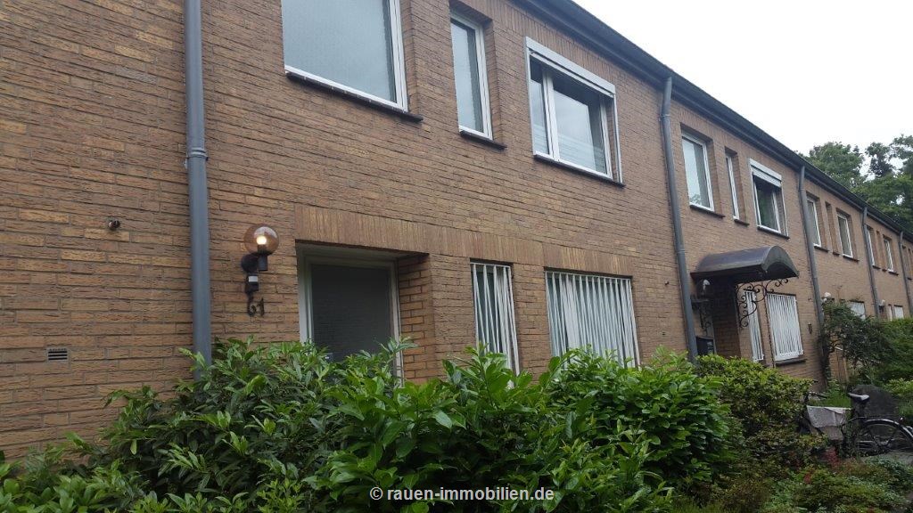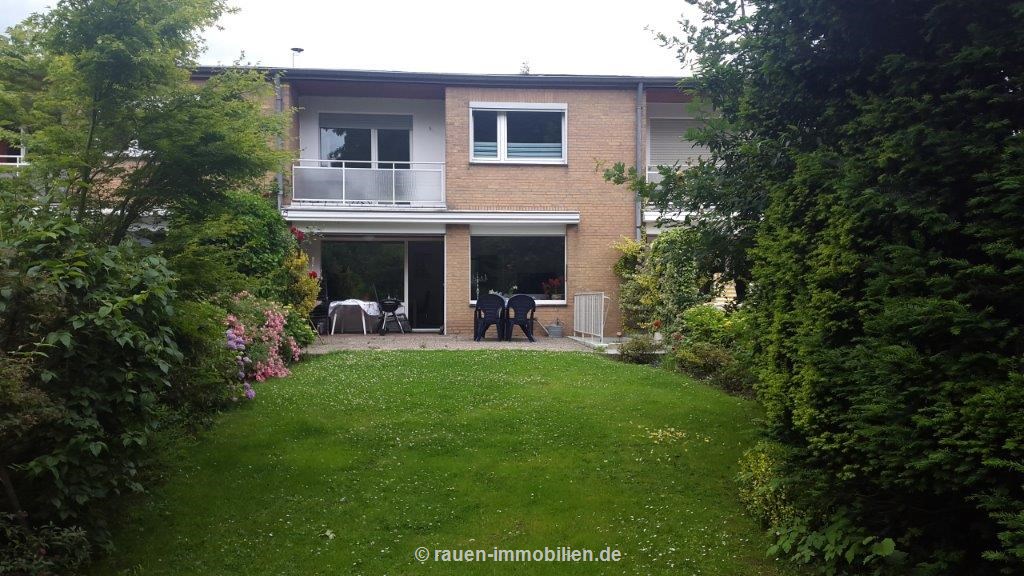 Reihenhaus mit Kellergeschoß (Souterrain-Wohnung), EG und 1. OG in Düsseldorf Stockum / Nähe Messe, zwei Duschen und zwei WCs sowie Schlafzimmer mit sieben Schlafplätzen. Ruhige Lage und zentrale Anbindung, Nähe zur internationalen Schule und zum Flughafen, schöner Garten mit großer Terrasse mit Außenmarkise und Gartenmöbeln, Vorgarten, Balkon 1. OG, Einzelgarage und sep. Einstellplatz