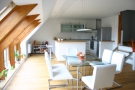 Helle, vollmöblierte Galeriewohnung mit offener Küche, 3,5 Zimmer, helles Wannenbad mit Glasdusche und Doppelwaschtischanlage, Gäste WC.